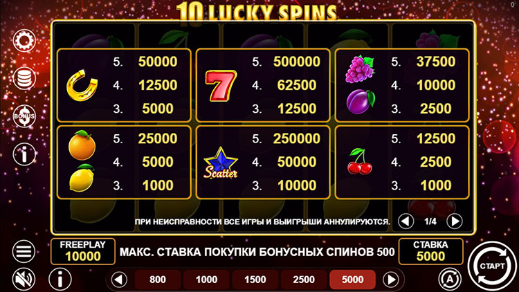 Таблица выплат 10 Lucky Spins