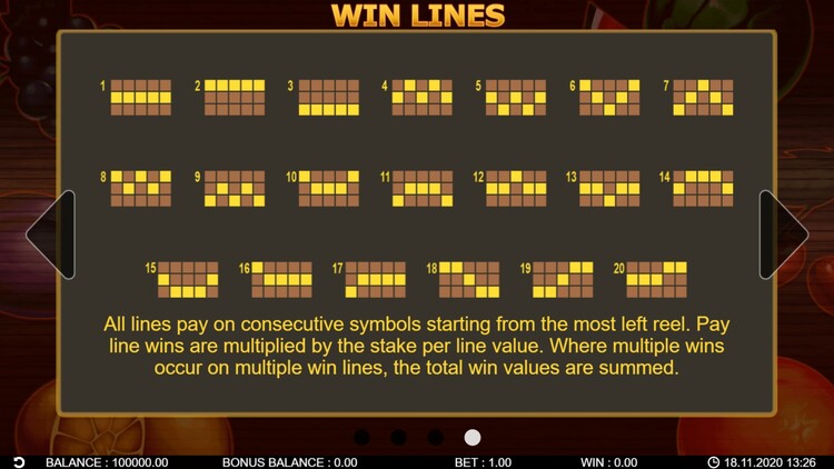 Таблица выплат 20 Hot Twist