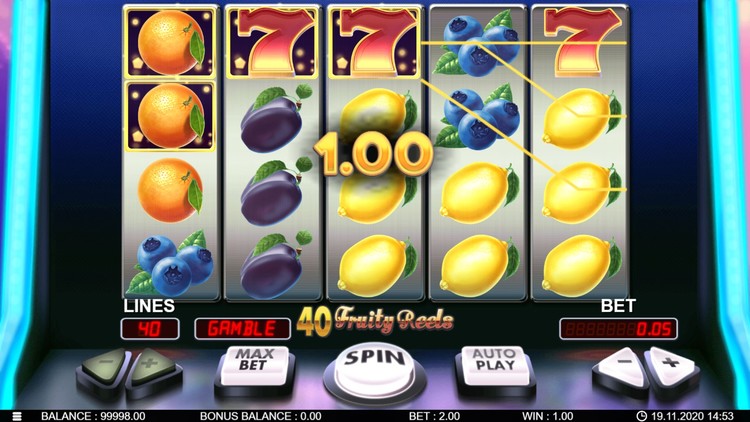 Таблица выплат 40 Fruity Reels