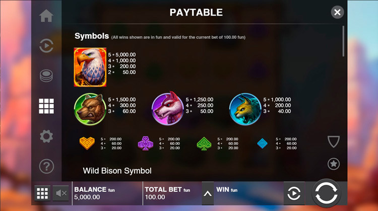 Таблица выплат Bison Battle