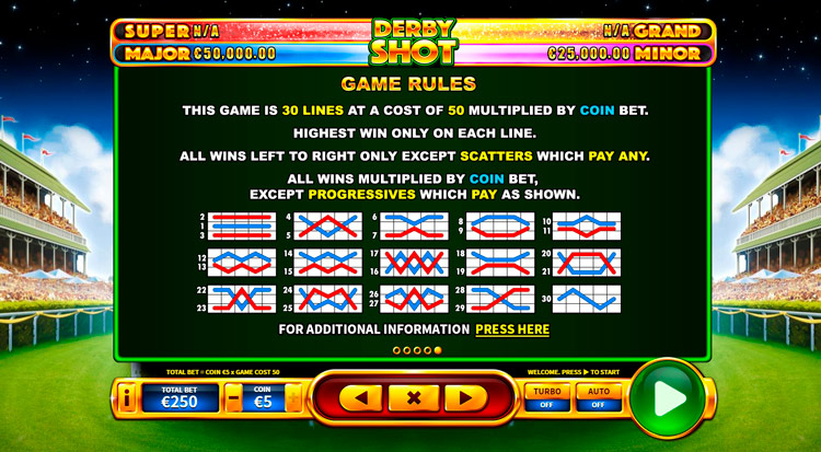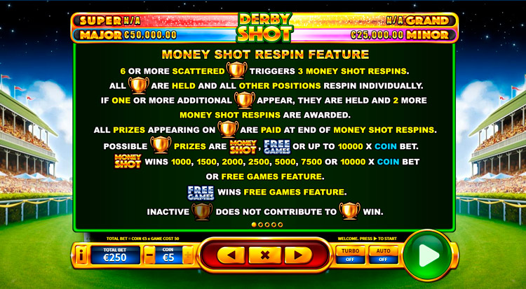 Таблица выплат Derby Shot