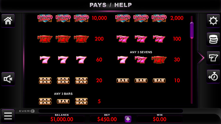Таблица выплат Diamond Hearts
