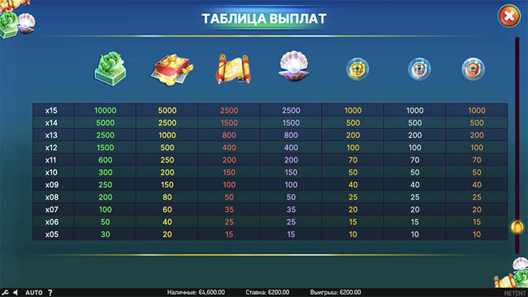 Таблица выплат East Sea Dragon King