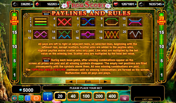 Таблица выплат Frog Story