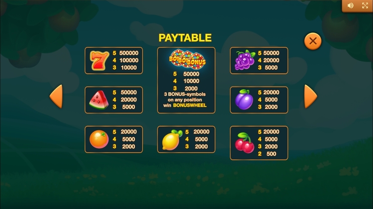 Таблица выплат Fruit Scapes