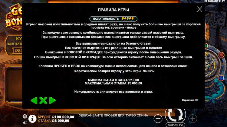 Таблица выплат Gems Bonanza