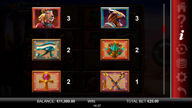 Таблица выплат Giza Infinity Reels