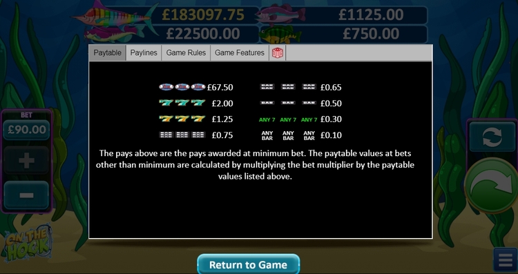 Таблица выплат On The Hook