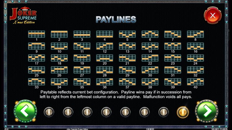 Таблица выплат Joker Supreme X-Mas Edition