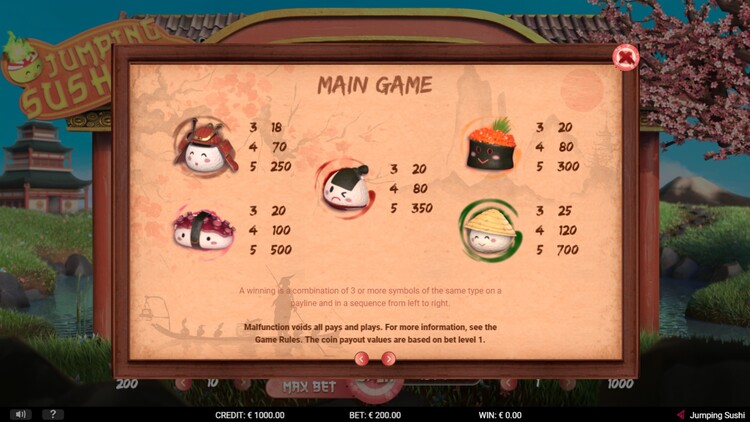 Таблица выплат Jumping Sushi