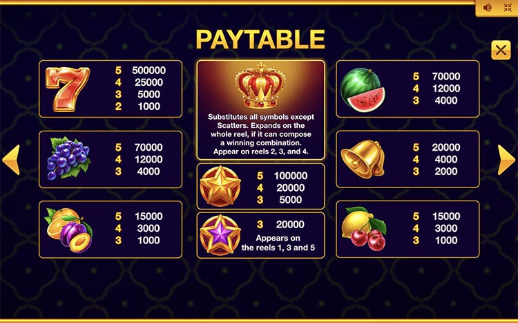 Таблица выплат Kingly Crown