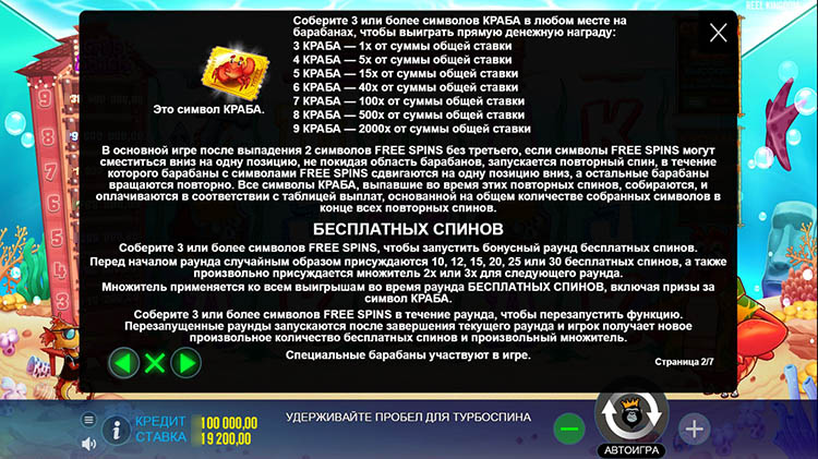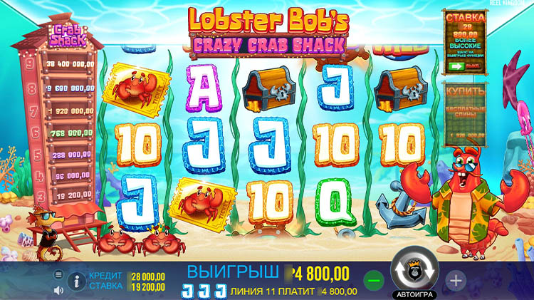 Таблица выплат Lobster Bob’s Crazy Crab Shack