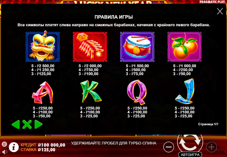 Таблица выплат Lucky New Year