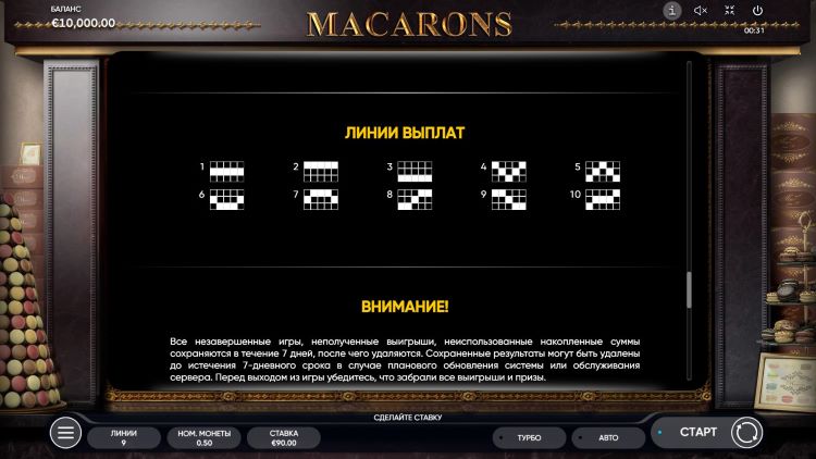Таблица выплат Macarons