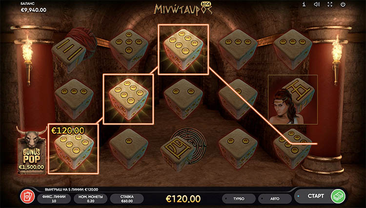 Таблица выплат Minotauros Dice