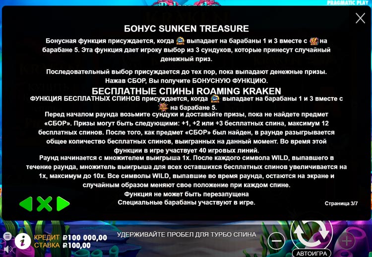 Таблица выплат Release the Kraken