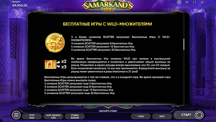 Таблица выплат Samarkand’s Gold