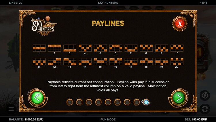 Таблица выплат Sky Hunters