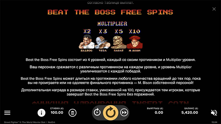 Таблица выплат Street Fighter 2: the World Warrior