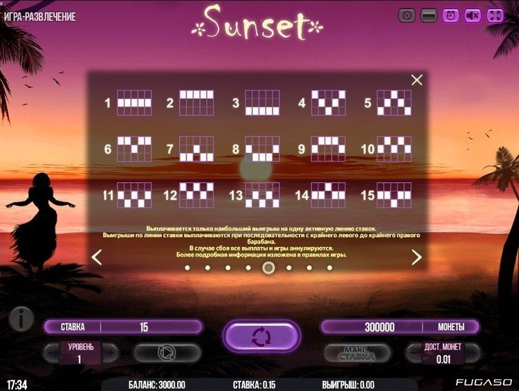 Таблица выплат Sunset