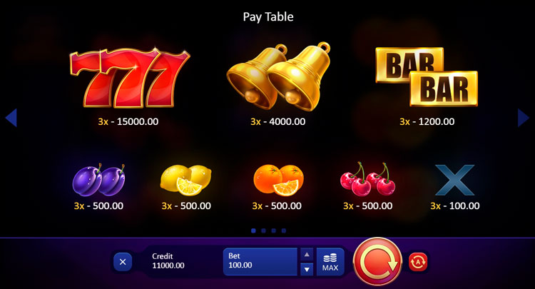 Таблица выплат Super Burning Wins: Respin