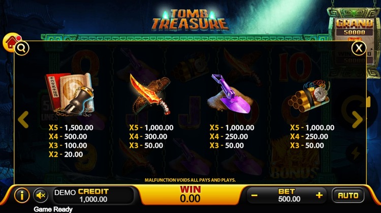 Таблица выплат Tomb Treasure