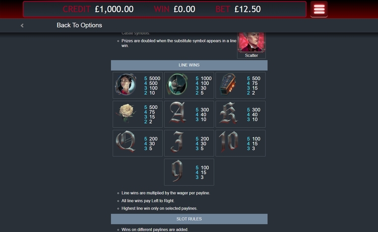 Таблица выплат Vlad’s Castle