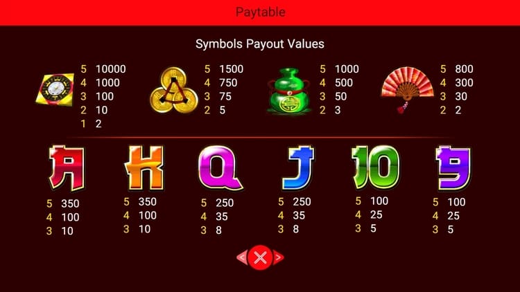 Таблица выплат Wong Choy Sa